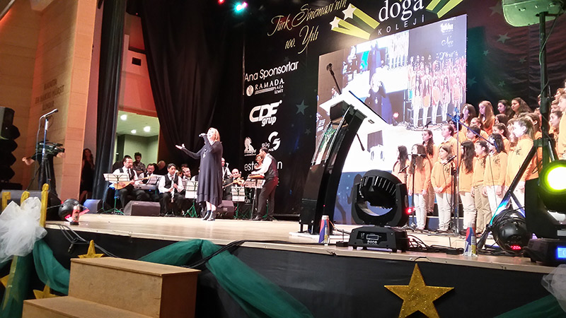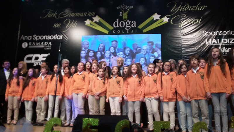 Kocaeli Doğa Koleji’nin başarılı müzik öğretmenleri Sayın Burcu Beşer ve Sayın Uğur Beşer’in tasarladıkları gecede Kolejin minik öğrencilerinden oluşan elli kişilik bir koro Türk Sinemasının tanınmış filmlerindeki şarkıları büyük bir başarıyla seslendirirken sinemamızın yüz yılına damgasını vuran bir çok sanatçımız geceye katılarak renk kattılar.
